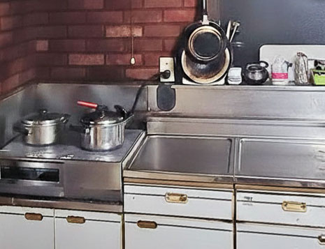 中古住宅をリノベーション。家事を任せられているおばあちゃんも安心して調理ができるIH仕様。お仕事でお忙しい奥様にも優しい、家事軽減対応設備が充実したシステムキッチンに交換。テレワーク対応リフォームの補助金を活用しました。