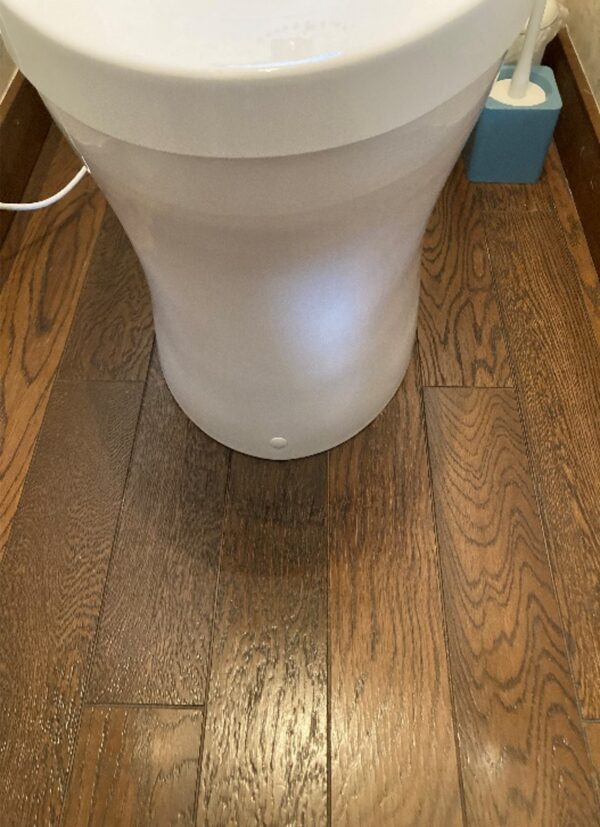 現在のトイレは、節水性を備えコンパクトになってきている商品が多く、また、床はクッション性があり水に強いクッションフロアと呼ばれる、塩化ビニル樹脂製が貼られいる事も多く、位置によっては前後左右に見えてしまう可能性もあります。
